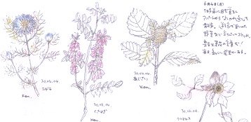 小さなポストカードに、可愛い野草を ペンと色鉛筆だけで彩っていきます。
